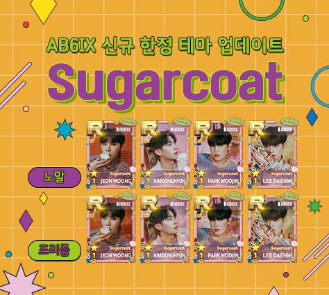 ... 이에 맞춰 리듬 게임 SuperStar BRANDNEW를 개발 및 운영하는 달콤소프트는 10월4일 에이비식스의 신곡 ‘Sugarcoat’를 동시 업데이트할 것이라고 밝혔다. 신곡 업데이트뿐만 아니라, 신곡의 아기자기하고 컬러풀한 콘셉트를 담은 한정 테