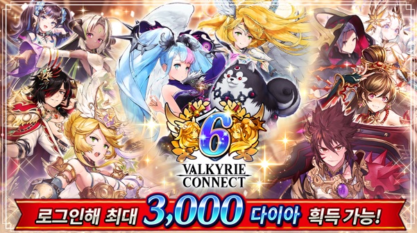 ... ■ 6주년 기념 캠페인 개최! [발키리 커넥트] 글로벌판 서비스 6주년을 기념해 [발키리 커넥트]를 서비스하는 전 세계 동시 캠페인을 개최힌다. 플레이어대한 감사의 마음을 담아 최대 3000 다이아를 선물하는 로그인 보너스와 글로벌 운영팀의 [추천 영웅]이 등장하는