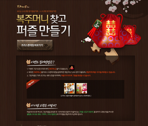 ... 또 물품 교부처의 NPC와 새해 인사를 나누면 생명력을 높여주는 흑사의 아이템뿐 아니라 추첨을 통해 25명에게 영화 ‘차이니즈 조디악’ 예매권을 선물한다. 이와 함께 오는 14일까지 상점의 모든 아이템을 10% 할인된 가격으로 이용할 수 있다. 한편 프리스톤테일은 유저
