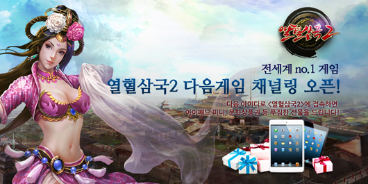... 다음은 이번 채널링과 신규 서버 오픈을 기념해 이벤트를 진행한다. 신규서버에서 플레이하는 이용자는 5일간 매일 로그인 선물을 받을 수 있으며 오는 22일까지 군주와 연맹의 랭킹에 따라 유명한 명장 및 다양한 게임 아이템을 받을 수 있다. 또 다음 게임을 통해 군주를 생