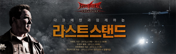 ... 다크에덴은 이번 설날을 맞이해 '라스트 스탠드 영화 제휴' '복 주머니를 잡아라' '어서와, 혼돈의 설날은 처음이지' 등 다양한 이벤트를 진행한다. 먼저, 라스트 스탠드 제휴는 이용자가 다크에덴에 접속만 하면 자동 응모되는 이벤트다. 추첨을 통해 영화예매권 200장 등 총