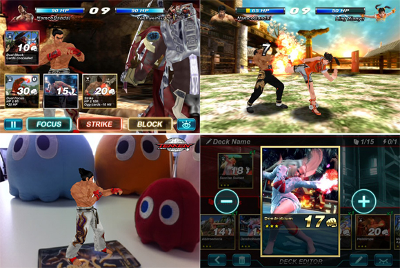... 지정 매장에서 판매되는 실물 카드는 부스터 팩을 통해 판매되며, QR 코드를 이용해 '모바일' '웹브라우저' 용 게임과 연동되어 카드를 추가하거나 강화할 수 있다. 이와 더불어 철권 게임에 등장하는 카드 덱을 구성해 다른 이용자와 대결을 펼칠 수도 있다. 반다이의 카드사업