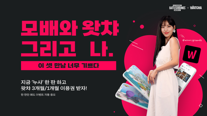 ... 이번 이벤트는 다음달 3일까지 누사 맵을 플레이하기만 해도 자동 응모되며, 추첨을 통해 왓챠 3개월 프리미엄 이용권(50명), 왓챠 1개월 프리미엄 이용권(2만명) 등이 제공된다. 누사는 휴양지 콘셉트의 배틀그라운드 모바일 맵으로 지난 15일 업데이트 됐다. 누사의