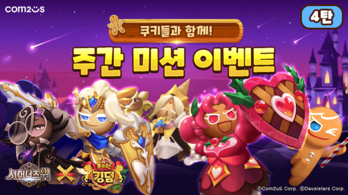 ... 해당 컬래버레이션에 맞춰 다양한 이벤트를 진행하고 있는 컴투스는 오는 11월 6일까지 매주 쿠키들과 함께 미션에 도전하고 아이템도 얻을 수 있는 기회를 마련하며 유저들에게 즐거움을 선사할 예정이다. 이벤트는 총 6주차에 걸쳐 진행된다. 일주일 간 젤리빈 획득, &r