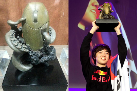... 결코 10대의 어린 나이라고는 믿기 힘든 강철 심장을 보여줬다. 공개된 트로피를 살퍄보면 빨판이 붙어 있는 오징어 다리가 마우스를 감싸고 있는 형상을 하고 있다. 아이언스퀴드라는 대회 명칭을 잘 표현했다는 평이다