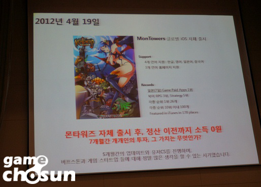 ... 그러나 사업이 1년 반이 지난 현재는 일본, 한국 등 20여개국 앱스토어 유료게임 순위 1위를 차지하는 등 상승가도를 달리고 있다. 이는 지난해 9월 국내시장에 타이쿤 RPG '몬타워즈'를 출시한 모바일게임사 버프스톤의 이야기다. 29일 신도림 테크노마트에서 열린 '2