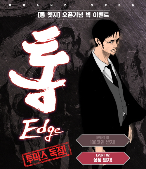 ...'통 시리즈'는 오영석 작가의 소설이 원작으로 부산 주먹의 전설 이정우의 파란만장한 서울 진출기를 그린 웹툰이다. 특유의 액션과 선 굵은 남자들의 의리와 지략, 물고 물리는 사건의 몰입도로 포털에서 실시간 검색어 1위를 기록했다. 투믹스는 또한 '통 엣지'의 독점 연재를 기념하기