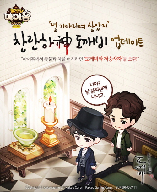 ...‘도깨비’ 콜라보레이션 아이템은 ‘별님의 찬란하신 도깨비 촛불’, ‘별님의 찬란하신 망각의 차’, ‘별님의 찬란하신 다이닝 테이블’, ‘별님의 찬란하신 도깨비 가르마 펌’, ‘별님의 찬란하신 페도라 쓴 헤어’, ‘별님의 찬란하신 도깨비 심장의 검’ 등 10종으로, 게임 내 ‘깜짝