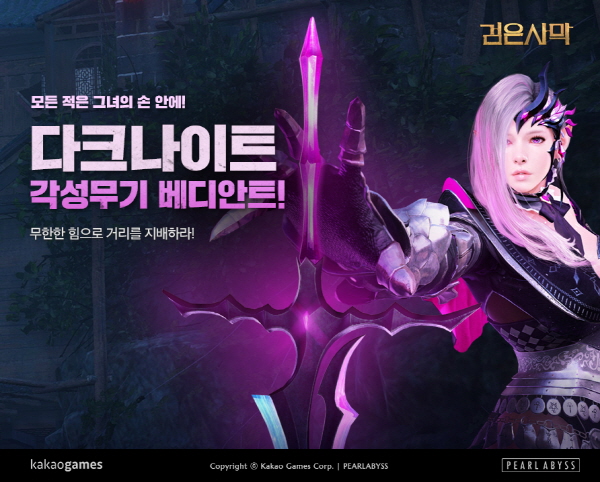 ... 특히, '착취의 손길’' '정령의 유산' '지배자' 등 막강한 각성 기술도 구사할 수 있게 된다. 이번 업데이트를 기념한 이벤트도 진행된다. 오는 2월 16일까지 '다크나이트'의 각성 무기 '베디안트'를 보유하면 20명을 뽑아 '문화상품권 1만원권'이 증정되며 새롭게 출시한 '