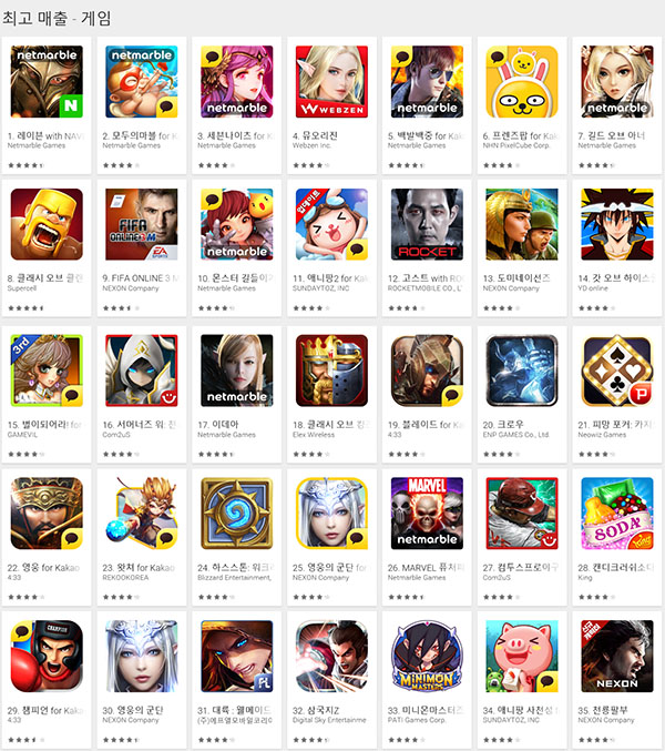 ... ▲ 2015년 11월 8일 구글플레이 게임 부문 최고 매출 순위 특히 길드오브아너는 지난 10월 21일 출시한 신작으로 빠르게 상위권에 진입했다. 이 게임은 부대전투라는 동일한 핵심 콘텐츠를 추구한 PC온라인게임 '모나크'와 모바일게임 '골든에이지'의 후속작이라 할 수