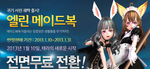 ... 대신 프리미엄 아이템이라 불리는 유료 아이템을 추가하고 PC방 혜택과 게임 내 편의 요소를 강화하는 시스템을 추가했다. 무료화 이후 '테라'는 저녁 시간 대 대기열 발생할 만큼 인기를 끌고 있으며 초보 지역 사냥터는 오픈베타 초반처럼 붐빈다. 이는 MMORPG 특징상 서비