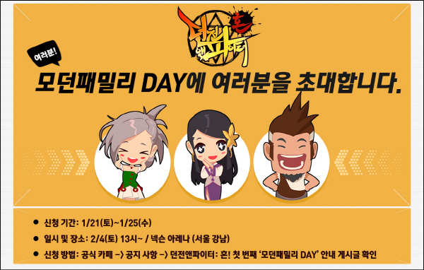 ...‘모던패밀리데이’의 참가자 모집은 오는 25일까지 진행되며, 참여를 원하는 유저는 ‘던전앤파이터: 혼’의 공식 카페를 통해 간단한 정보를 입력하면 신청할 수 있다. ‘던전앤파이터: 혼’에 관한 보다 자세한 사항은 공식 홈페이지와 공식 카페를 통해 확인 가능하다. [조상현 기자 n
