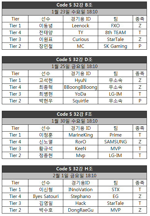 ... ◆ 2013 GSL 시즌1 코드S 32강데진표 및 일정 [오상직 기자 sjoh@chosun. com] [gamechosun. co