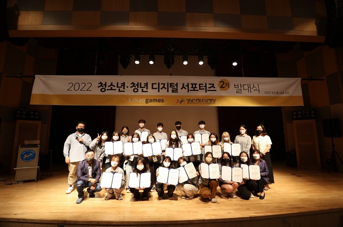 ... 카카오게임즈는 성공적으로 활동한 서포터즈 1기의 뒤를 이어서, 올 하반기에 활동할 서포터즈 2기 모집을 시작해 서류 심사와 면접을 거쳐 총 18명의 청소년 및 청년을 최종 선발했다. 지난 3일 성남시청소년재단 중원청소년수련관에서 진행된 이번 발대식은 카카오게임즈 임지