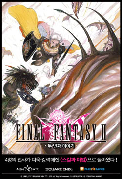 ... '파이널판타지2'에서는 초코보와 비공정이 등장하고 지원하는 무기와 마법 스킬은 200여 종이 넘는 것이 특징이다. 엑토즈의 관계자는 "’파이널 판타지’에 이어 ‘파이널 판타지2’를 선보이게 되어 기쁘게 생각한다”며 “이번 ‘파이널 판타지2’ 한글화 버전에서는 스마트폰에