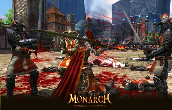 ... '모나크'는 RPG의 3대 요소인 전투와 직업, 아이템에 '부대전투'라는 요소를 추가로 내세웠으며, 플레이어 캐릭터를 중심으로25명의 부대원을 편성해 실시간 부대 단위 전투와 공성전을 즐길 수 있다. 넷마블은 이번 테스트를 위해 이용자간 전투(PvP)시스템인 '마을 약탈전