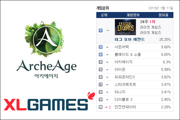 ... PC방 전문 사이트 게임트릭스에 따르면 12일 현재 PC방 점유율을 기준으로 하는 순위에서 10위 내에 오른 게임은 리그오브레전드, 서든어택, 블레이드앤소울, 아키에이지, 아이온, 피파온라인3, 스타크래프트, 리니지, 디아블로3, 던전앤파이터다. 이들 게임은 넥슨(3개),