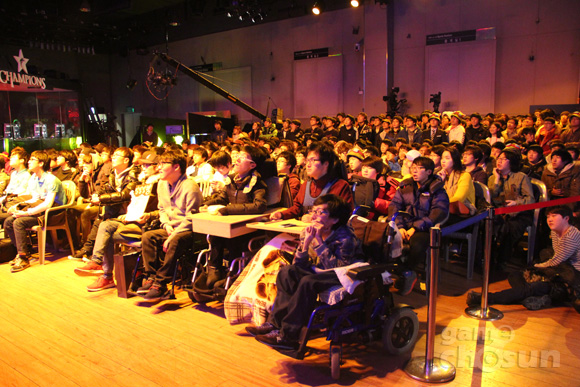 ... 이들은 아주부 프로스트와 아주부 블레이즈의 4강전 경기를 관람하기 위해 현장을 방문했다. 장애인들이 현장을 찾는 것은 쉽지 않은 결정이다. e스포츠 스타디움에는 이들을 위한 좌석을 비롯해 시설도 없으며, 경기가 늦게까지 진행되는 특징 상 경기장을 찾아온다는 것은 많은 용기가 필
