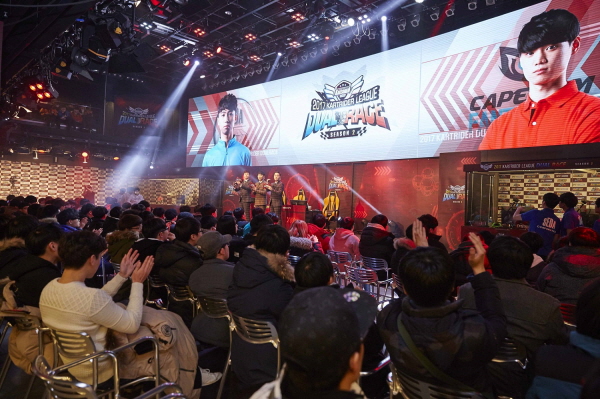 ...또, ‘카트라이더 리그’에 첫 출전한 ‘Sense Line’은 스피드전에서 ‘QsenN_White’에게 약한 모습을 보이며 3라운드 모두 패배했지만 아이템전에서 두각을 나타내며 1승을 획득하고, 마지막 에이스 결정전에서 치열한 대결을 펼친 끝에 ‘0. 027초’ 차이로 최종 승자에