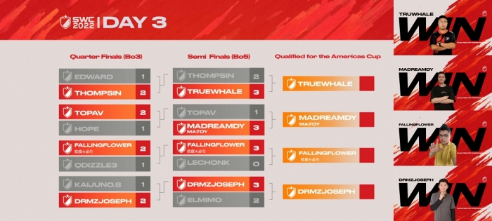 ... 미주 지역 예선은 예선 출전자 절반이 올해 첫 ‘SWC’ 데뷔로, 신예와 전통강호의 대결로 주목받았다. 앞서 21일부터 22일 열린 예선에서 넷 중 세 티켓을 대회 유경험자들이 싹쓸이하며 노련함을 입증한 가운데, 28일 새벽 패자전에는 지난 경기에서