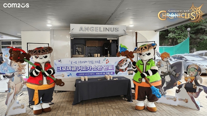 ... 이를 통해 컴투스는 여러 사연들을 접수 받았으며, 커피를 통해 따뜻한 마음을 전하고자 하는 신청자들의 사연을 선정, ‘크로니클’의 소환수 캐릭터인 웅묘무사와 함께 다양한 음료를 제공하는 ‘엔젤리너스’ 커피차를 배달했다. 먼저 지난