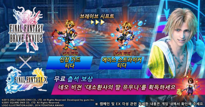 ...,와 공동 개발하고 자사가 서비스하는 모바일 RPG ‘FINAL FANTASY BRAVE EXVIUS(파이널 판타지 브레이브 엑스비어스, 이하 FFBE)’에 신규 FINAL FANTASY X(이하, FFX) 유닛 ‘티다’와 ‘루