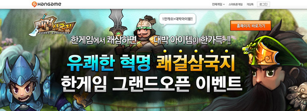... 또한, 농장 경작, 전마 사육, 해상 약탈, 비무, 서버 최강자전 등 다양한 게임 시스템이 기본적인 전투 이외의 즐길 거리를 제공한다. 쾌걸삼국지는 최근 네이버 채널링 서비스와 함께 신규 서버를 추가하는 등 꾸준한 유저들의 인기를 얻고 있다. NHN 코어게임사업부 조현식