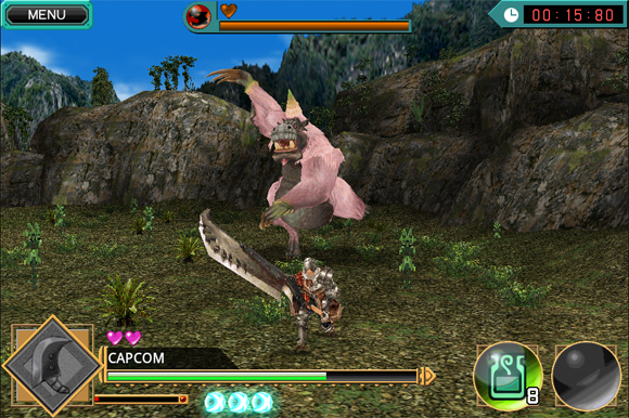... 이용자는 '헌터'가 되어 몬스터의 공격을 타이밍에 맞춰 피하고 틈을 이용해 공격하게 된다. 또한 제한 시간 내에 적을 무찌르고, 5계통의 무기와 100종류 이상의 방어구를 제작할 수 있다. 특히 블루투스를 이용한 2인 협력플레이가 가능해 동료와 힘을 합쳐 더욱 강력한 몬스