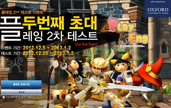 ... 게이밍(대표 이강인)은 미국 옥스퍼드 대학 출판부와 콘텐츠 제휴계약을 맺고 '플레잉'에 세계적 베스트셀러 '잉글리쉬 타임'을 학습 콘텐츠로 녹여 냈다. 또 게이밍은 '플레잉'에 교육과학기술부 지정 초등학교 필수 영어단어 800개와 심층학습에 필요한 단어 200개를 연상과