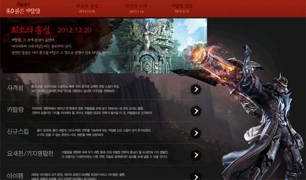 ... 이런 밀리언아서의 폭발적인 반응은 일본에서도 유사한 형태를 보인 바 있다. 지난 4월 일본에처음 출시한 밀리언아서는 출시 후 30주 이상 매출 상위권을 기록하고 있으며, 한국판이 출시되기 이전부터 일본 버전을 플레이하는 국내 유저가 있을 정도로 팬층이 두텁다. 액토즈소프트