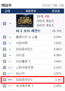 ...9%(9위)를 기록하며 10위권 안착에 성공했다. 특히 낮 12시부터 서비스를 시작한 데다가 이후 접속자 폭주로 수시간의 임시점검이 이어졌다는 점을 고려하면, '9위'라는 첫날 성적표는 합격에 가까웠다는 게 업계의 관측이다. 또한 '피파온라인3'와 전작인 '피파온라인2'