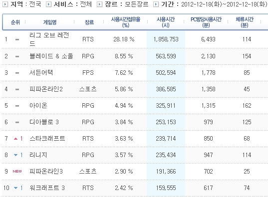 ...90%를 기록했고 점유율 하락이 예상됐던 피파온라인2는 5. 86%(전날 5. 36%)로 4위를 유지했다
