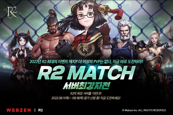 ... R2Match는 R2 게임의 캐릭터를 보유한 회원이라면 누구나 신청할 수 있는 PvP(이용자 간 대결) 대회다. 같은 서버의 인원들끼리 나이트, 레인저, 엘프, 서모너, 어쌔신 클래스 각 1명씩 총 5명이 팀을 이뤄 참가하며, 팀의 대표자가 R2의 공식 홈페이지를 통해 신