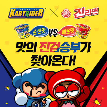 ... 먼저, 아이템 카트바디 ‘진라면 순한맛 V1’과 스피드 카트바디 ‘진라면 매운맛 V1’을 선보인다. 또, ‘진라면’ 용기를 착용하고 있는 ‘다오’, ‘배찌’ 캐릭터 등 이