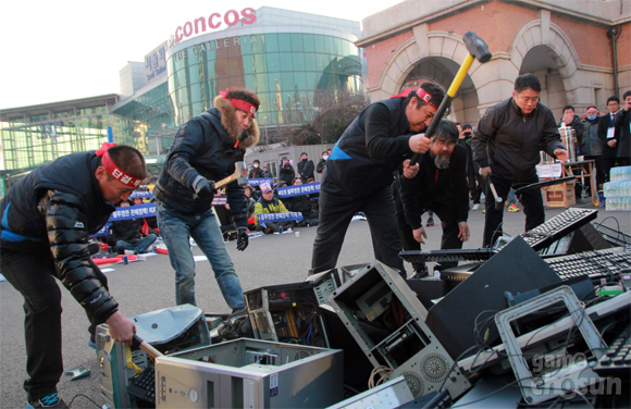 ... 한국마이크로소프트와 전국 PC방 업주들이 윈도우8 정품 사용을 놓고 정면충돌했다. 한국인터넷문화컨텐츠서비스협동조합은 전국소상공인단체연합회와 함께 17일 서울역광장에서 '소상공인 억압하는 독점기업 MS규탄 집회'를 열고 PC와 MS사의 윈도우 운영체제 CD를 부수는 퍼포먼스를