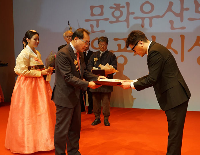 ... 올해 행사에서는 문화유산의 보존 및 관리, 학술 및 연구, 봉사 및 활용의 총 3개 분야에서 문화훈장과 대통령 표창 시상이 진행됐다. 대통령 표창은 해당 부문에서 5년 이상의 공적이 뚜렷한 개인 또는 단체를 대상으로 해, 문화재 지원을 위한 성실성과 지속성, 진정성 면을
