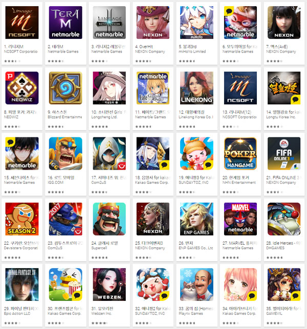... 중위권에서는 기존 인기작들이 업데이트 효과로 다시 모습을 드러내거나 순위 상승을 이뤘다. '세븐나이츠'는 한 단계 오른 15위를 기록했고, '애니팡3'는 4계단 상승한 19위를 달성했다. '쿠키런:오븐브레이크'는 지난 주 보다 2위를 끌어올린 22
