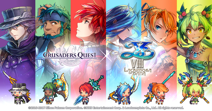 ... 이번 업데이트를 통해 12월 28일까지 2주간 한정으로 ‘YsⅧ’의 콜라보 용사를 계약서를 통해 획득할 수 있는데, 워리어 계열의 ‘아돌 크리스틴’, ‘다나 이클루시아’, ‘락샤 폰 로즈웰’, 그리고 팔라딘 계열의 ‘리코타 벨다인’, ‘사하드 노틀러스’, 마지막으로 헌터 계