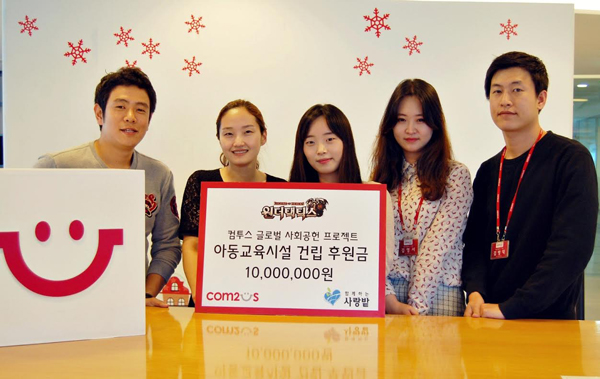 ... 이후 게임 내에서 전세계 이용자들의 적극적인 참여로 프로젝트 목표를 달성했고 이에 1000만원을 해외 저개발국가의 아동교육시설 건립 후원금으로 기부하게 됐다. 이번 후원금은 국제 사회공헌 단체인 사단법인 함께하는 사랑밭에 전달돼 교육 시설이 부족하거나 낙후된 해외 지역의