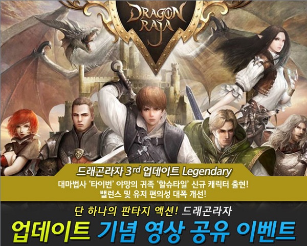 ... 또한, 이번 업데이트를 통해 추가된 '타이번 하이시커'와 '할슈타일 후작'을 포함해 총 25명의 영웅을 선택해 플레이할 수 있다. 이번 게임조선에서 진행하는 이벤트는 게임조선이 제작한 총 3개의 드래곤라자 영상 중 1개를 페이스북, 트위터 등의 SNS나 각종 카페 및 블로그에