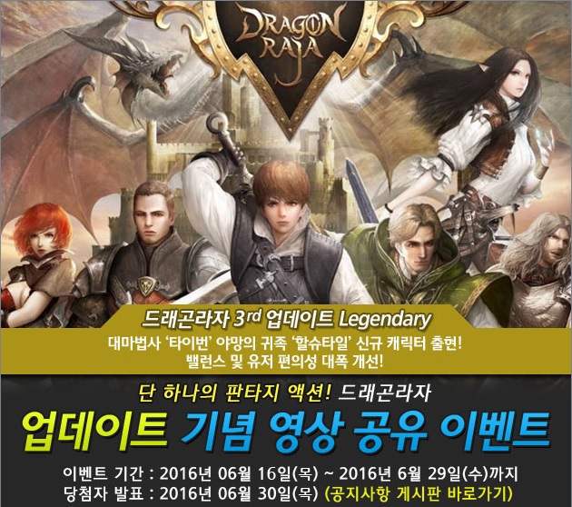... '드래곤라자' 영상 공유이벤트' 당첨자를 발표합니다. 7월 1일(금) 당첨자에게 게임조선 회원정보 상에 기재되어 있는 메일로 당첨 쿠폰이 일괄 발송됩니다. 회원정보가 잘못되어 있거나 휴면상태일 경우, 정상적인 경품 지급이 어려우니 꼭 해당 시기 전까지 회원정