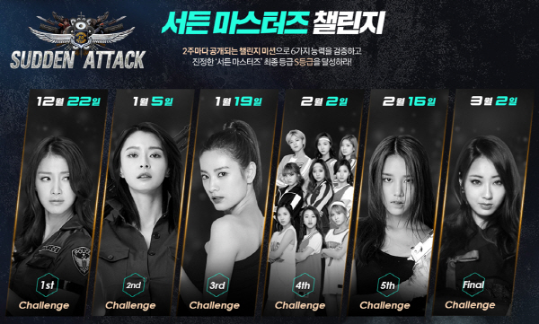 ... Zombie(100일)’ 등을 즉시 지급한다. 또한, 2주마다 추가되는 총 6개의 챌린지를 수행하고, 최종등급 ‘S등급’을 달성한 경우 ‘마스터즈 패키지 영구제’를 100% 지급한다. 이와 함께 ‘담력’ 마스터의 주인공 ‘이시영’ 캐릭터를 새롭게 출시했다