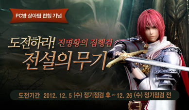 ... PC방에서 플레이하여 얻을 수 있는 ‘픽시 엘릭서’를 1개 이상 가지고 있으면 자동으로 ‘전설의 무기에 도전하라!’와 ‘전설의 아이템을 획득하라!’ 이벤트에 참여할 수 있다. ‘픽시 엘릭서’는 이번에 새롭게 업데이트되는 PC방 전용 사냥터(던전)에서 ‘픽시의 영혼’을 모