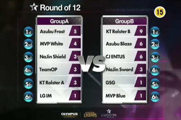 ... A조 1위 아주부프로스트와 B조 1위 KT롤스터B가 대결하고 A와 B조에서 2위에 오른 MVP화이트와 아주부블레이즈가 경기를 벌이는 것. 인터리그는 같은 조에 속하지 않은 팀과의 경기가 진행되기 때문에 시청자들에게 다양한 볼거리를 제공한다. 또 각 팀에게 순위를 뒤집을 수