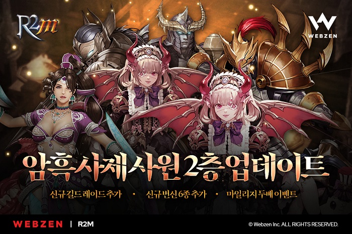 ... 신규 필드 던전 ‘암흑 사제 사원 2층’은 65레벨 이상부터 입장할 수 있다. 해당 던전에서 4종의 몬스터를 처치하면 캐릭터 능력치 강화에 효과적인 영웅/희귀 등급의 아이템을 획득할 수 있다. 웹젠은 일루미나 던전을 테마로 한 신규 길드 레이드 &
