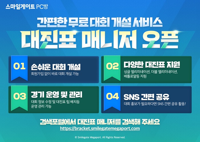 ... 게임 홍보물은 PC방에서 필요한 각종 안내문들과 ‘로스트아크’, ‘테일즈런너’, ‘겟앰프드’ 포스터로 구성되어 있다. 또한, PC방 방문객을 위해 스마일게이트PC방 카카오톡 채널을 통해 PC방 쿠폰도 배포 중이다.