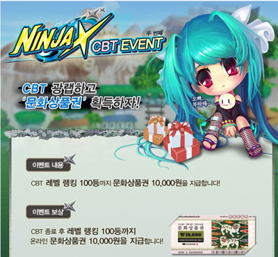 ... 엔터메이트는 자사가 서비스할 예정인 웹게임 '닌자X' 비공개테스트(CBT)를 다음커뮤니케이션과 함께 진행한다고 30일 밝혔다. '닌자X'는 힁스크롤로 진행되는 액션RPG로 SD캐릭터 닌자를 조종해 아기자기한 정글 몬스터를 쓰러트리는 웹게임이다. 이번 CBT는 다