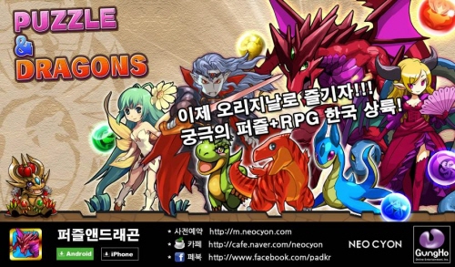 ... 또한 신청자에게는 아이패드 미니와 배스킨라빈스 교환권 등 다양한 상품들이 추첨을 통해 제공될 예정이다. 기타무라 요시노리 네오싸이언 대표는 “일본 최고의 모바일 게임으로 인기를 누리고 있는 ‘퍼즐앤드래곤’을 드디어 국내에 선보인다”며 “사전 다운로드 예약을 통해 보다 빠