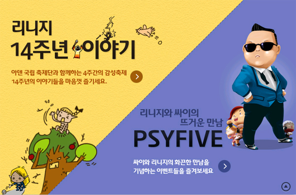 ... ※ 관련 기사: 14주년 맞은 리니지, 역시 스케일이 다른 이벤트 이번 이벤트는 온라인과 오프라인을 오가며 다양한 형태의 혜택을 고객에게 돌려주는 형태로 강남스타일로 일약 글로벌 스타로 우뚝 선 싸이와 대한민국 최고의 게임 리니지의 만남은 이슈가 되기에 충분하다. 싸이와