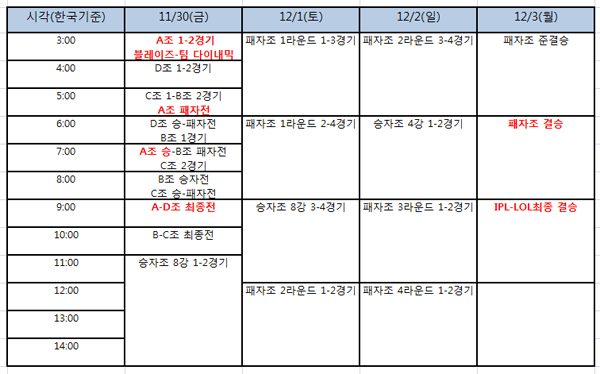 ... ◆IPL 시즌5 리그오브레전드 경기 일정 ※ 구체적인 경기 일정은 현지 사정에 의해 변경될 수 있습니다. [오상직 기자 sjoh@chosun. com] [gamechosun